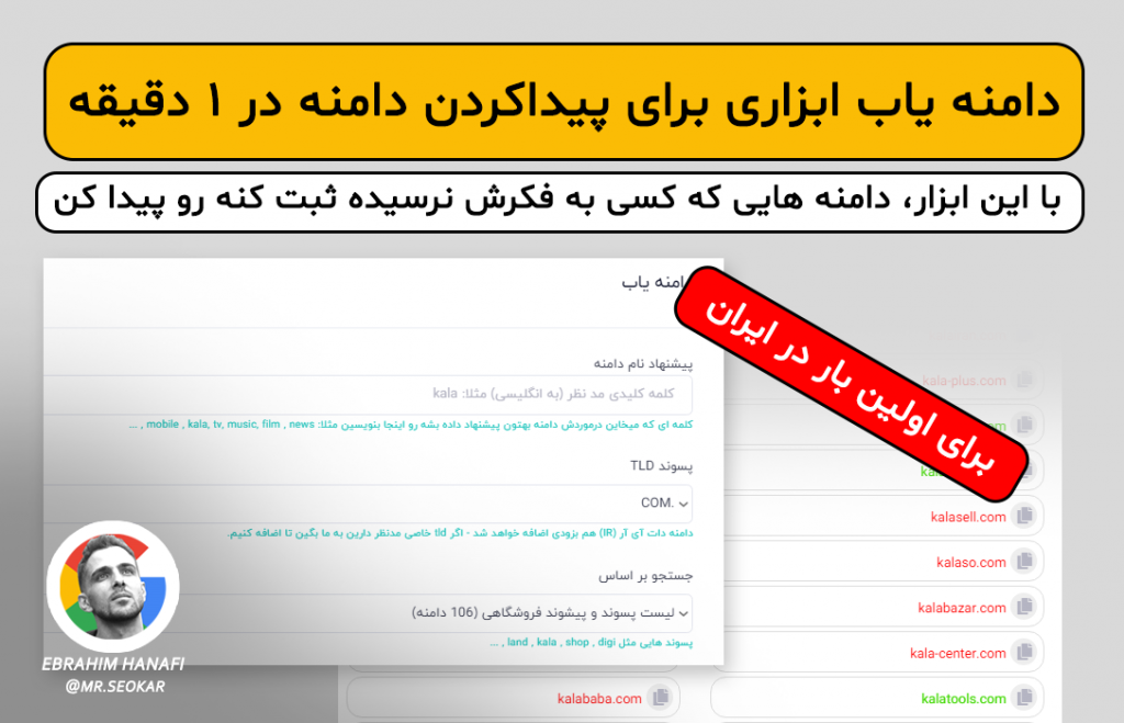 با دیدن این نام دامنه یاب به این فکر نکنید که مثل همه سایت ها شما یک دامنه می زنید و آزاد بودن یا نبودن آن را به شما نشان می دهد. دامنه یاب فراتر از نشان دادن دامین های آزاد عمل می کند و ایده هایی را برای انتخاب به شما می دهد. این ابزار در مدت زمان کم، لیستی از دامنه ها را بسته به موضوع سایتی که دارید، برایتان آماده می کند.