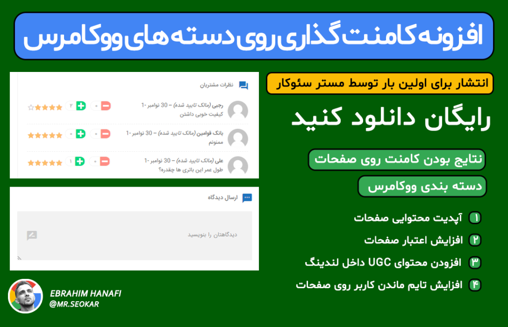 - یکیش اینه که کاربر رو نگه میداره روی صفحه برای خوندن کامنت ها و این خود به خود روی سئوی صفحه و تایم آن پیج (Time On Page) و میانگین تایم آن سایت کلی سایت (Average Time On Site) تائیر خوبی میزاره.